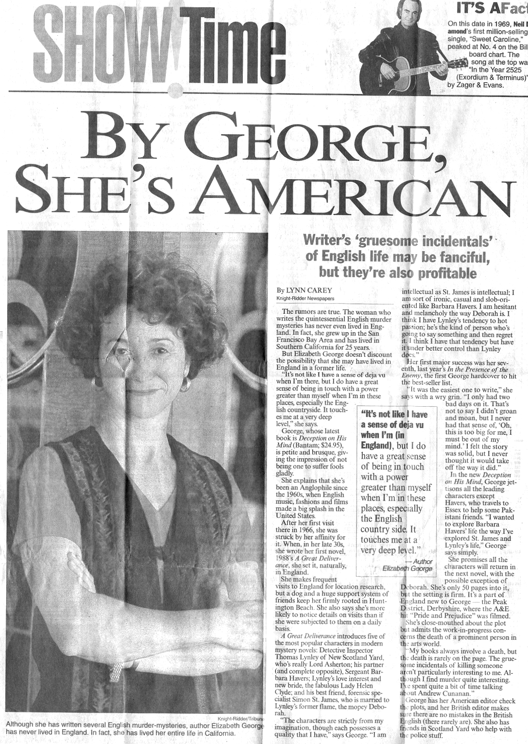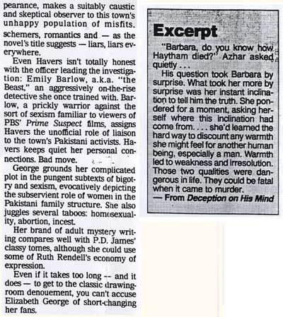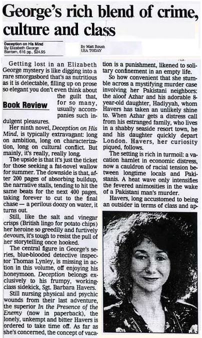 "Compelling and complex…All sorts of secrets and surprises figure into the well-wrought narrative, but what one remembers of a George book are not the mysteries of plot but those of character." "George's story is compelling and complicated, on that avoids facile moralizing on a subject of real human importance." "Recommended reading for…those mystery readers who look for moral dilemmas and psychological issues as well as murder mystery for their entertainment." "George's novels are complex, stylishly written and delve deeply into the human psyche…Wonderful reading." "This rich, engrossing novel portrays a contemporary England that's culturally complex and simmering with tension…George keeps an unrelenting grip on her readers." "George doesn't' disappoint…Don't think you'll easily flush out the villain here…George manipulates the giant cast and manifold subplots with her usual aplomb…[An] intelligent, finely nuanced performance." "Elizabeth George is one of the best writers of British mysteries on the current book scene, even though she's an American. Her absolute mastery of the genre is evident."