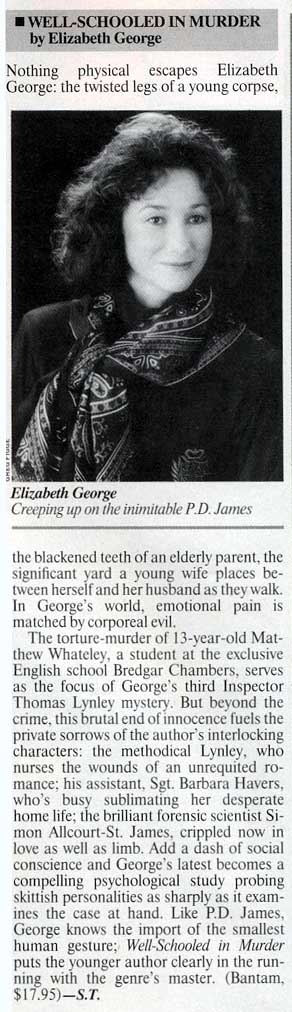 "Ms. George has crafted a fine and powerful novel sure to delight readers in the mood for a thought-provoking, hard-hitting mystery." -- The Sun, Baltimore